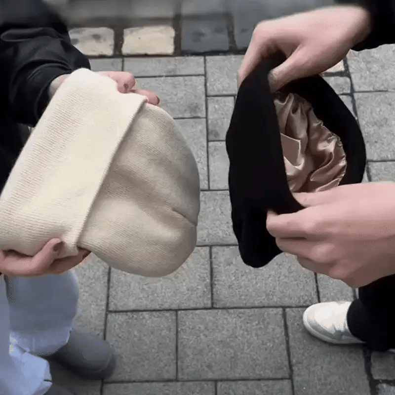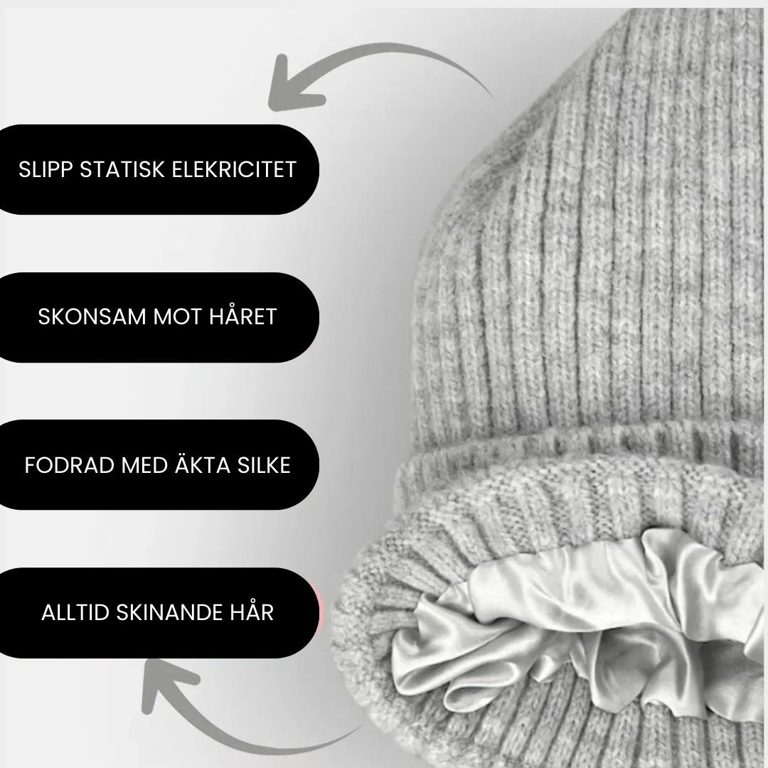 Hemligheten är att minska friktionen och det är precis vad silkefodret gör! Ta på mössan varsamt utan att dra i håret.